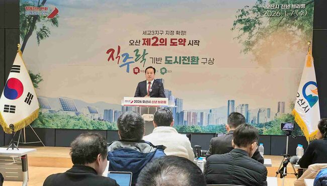 이 시장은 7일 오후 신년 브리핑을 통해 세교3신도시를 기점으로 인구 50만 명 규모의 경제자족도시로 도약하겠다는 중장기 구상을 공식화했다. 특히 오산의 미래 100년을 준비하는 종합 청사진을 밝히며 기대감을 높였다.