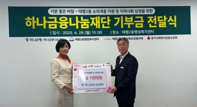 성남시 태평2동, 하나금융나눔재단서 2000만원 기탁받아